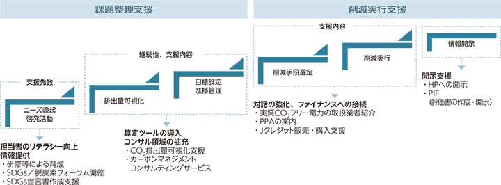 脱炭素化に取り組むお客さまに対する導入から情報開示までの各フェーズの支援策