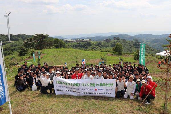 常陽銀行は、ふるさとの美しく健全な森を次世代に引き継ぐため、常陸太田市、那珂市および筑波山、の「常陽ふるさとの森」において、間伐や植樹活動を実施し、ふるさとの緑を守り育てる森づくりに取り組んでいます。