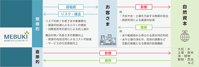 経済の発展は生活環境や教育といった社会条件に基づいて成り立ち、また、社会は自然環境によって支えられております。したがって、持続可能な地域社会の実現および地域社会と当社グループの持続的な発展を実現するためには、環境の維持・保全が前提条件となります。当社グループは、気候変動対応・環境保全を、事業戦略上、重要なファクターの一つであると認識しております。今後も、自らの企業活動における環境負荷の低減に努めるとともに、環境保全に寄与するサービスの提供やサプライチェーンへの働きかけなど、事業活動を通じた環境保全への取り組みを強化していきます。また、TCFD・TNFD提言に基づく積極的な情報開示を通じてステークホルダーとのエンゲージメントをより一層強化していきます。