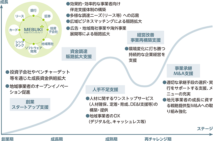 グループ営業シナジーの発揮や、グループ内外機関との連携による複合的・総合的なソリューション提供により、地域事業者さまの持続的な成長に貢献します。